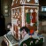This is a two-foot gingerbread house I made for a school auction. It featured stained glass windows, decorated cookies and the roof and porch had space to put present party chocolates. Unfortunately, I didn’t have the Christmas lights inside the house on to illuminate the stained glass windows. On the sides of the house are large rocking horse designed cookies. For the auction, I also included a bag of icing so whoever bought it could add their logo or family name above the door.
